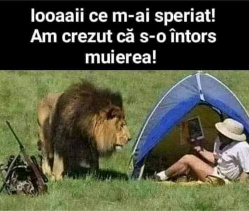 - Cum să dormi, se clatină acoperisul de la sforăitul ăstuia, am stat toată noaptea în fotoliu şi m-am uitat la el